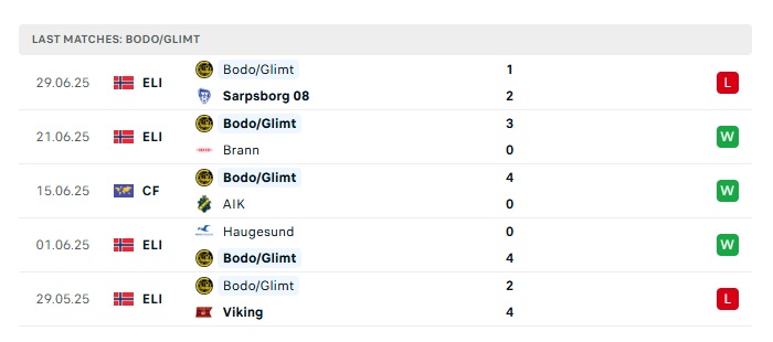 Phong độ gần đây Bodo Glimt vs Sandefjord