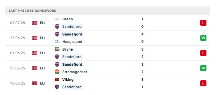 Hiện tại, dù Sandefjord vẫn chơi rất tốt nhưng họ vẫn còn một chút sự thua kém trước đối thủ. Cụ thể thì trong 5 trận đấu gần nhất của Bodo, họ được ghi nhận đã có 3 chiến thắng và thua 2. Trong khi đó thì Sandefjord lúc này đang chỉ thắng 2 và còn lại là 3 thua trong 5 trận gần nhất. Thế nên các chuyên gia đều tin vào việc Bodo sẽ có cho mình 1 chiến thắn trọn vẹn trong ngày thi đấu hôm nay.