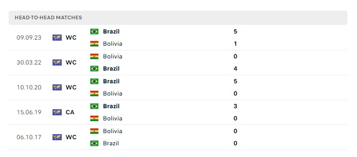 Nên biết rằng thời gian qua, Bolovia đang có phong độ thi đấu kém cỏi so với Brazil dù đối thủ đã đi xuống rất nhiều. Trong 5 trận đấu gần nhất của Bolivia, họ được ghi nhận chỉ có 1 thắng, 1 hòa và 3 thua. Trong khi đó thì Brazil đã có 3 chiến thắng, 1 hòa và còn lại là 1 thua trong 5 trận gần nhất. Do đó, các chuyên gia đều tin rằng đội khách Brazil hôm nay dễ dàng có được cho mình 1 chiến thắng.
