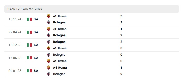 • Kèo tỷ số H2 Bologna vs Roma: 2-2