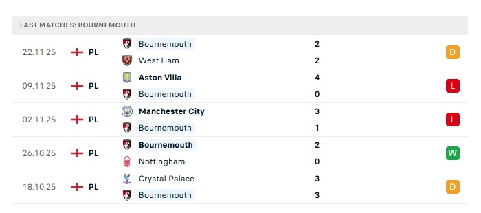 Đang có phong độ thi đấu tương đối ổn định, Bourmemouth chắc chắn sẽ tự tin giành về cho mình 3 điểm trọn vẹn trước Everton. Hiện tại, Bournemouth đang có mặt ở vị trí thứ 8 trên BXH với 19 điểm sau 12 vòng đấu. Trong khi đó thì Everton lúc này đang có mặt ở vị trí thứ 11 cùng 18 điểm. Như vậy thì dù có lợi thế sân nhà, Bournemouth cũng chưa chắc dễ dàng có được 3 điểm.