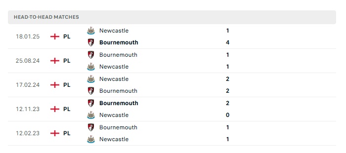 Lịch sử đối đầu Bournemouth vs Newcastle