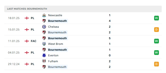 - Phong độ gần đây Bournemouth