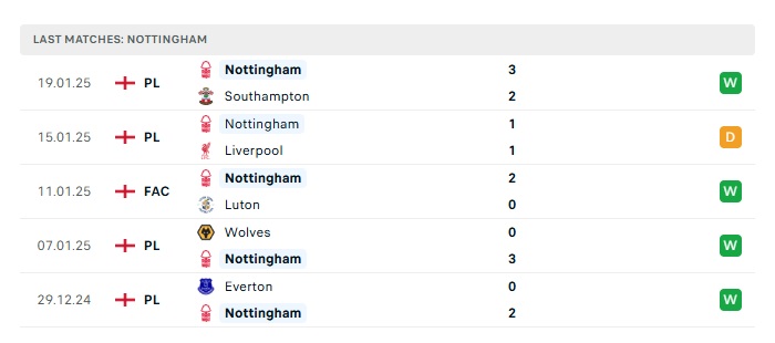 - Phong độ gần đây Nottingham Forest