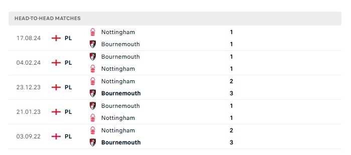 Lịch sử đối đầu Bournemouth vs Nottingham Forest