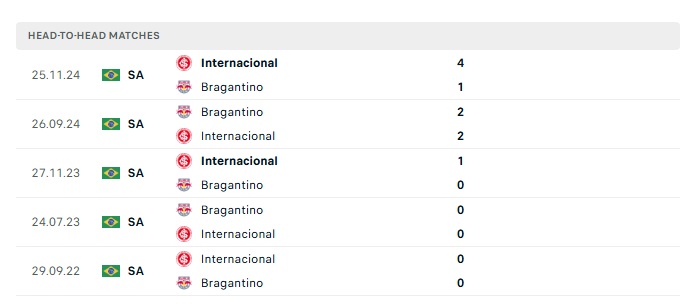 - Kèo tỷ số H2 Bragantino vs Internacional: 1-0