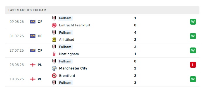 • Phong độ gần đây Fulham