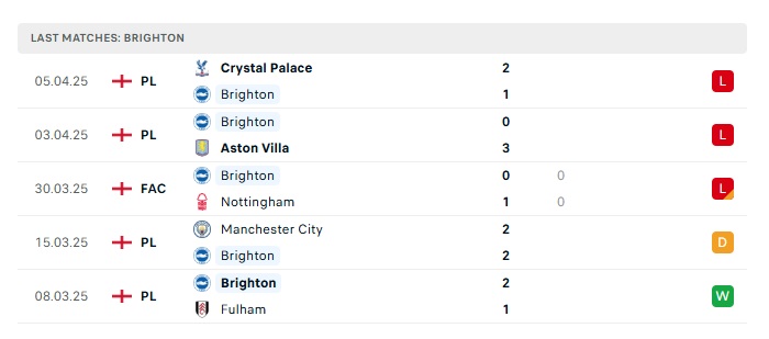 - Phong độ gần đây Brighton