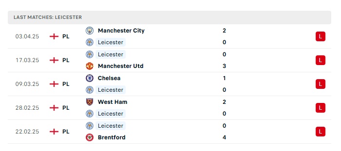 - Phong độ gần đây Leicester City