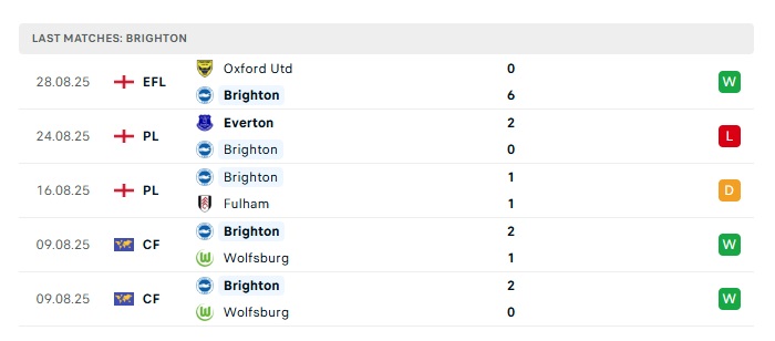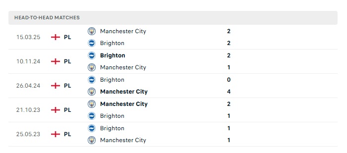Tất nhiên, vì vẫn đang trong quá trình hoàn thiện và lấy lại bản sắc nên phong độ của Man City không quá tốt. Bằng chứng là trong 5 trận gần nhất, Man City đang có cho mình 3 chiến thắng và chỉ thua 2. TRong khi đó thì Brighton lúc này đã thắng 3, hòa 1 và chỉ thua 1 trong 5 trận gần nhất. Thế nên, các chuyên gia đều tin rằng trận đấu hôm nay sẽ chỉ có thể là 1 chiến thắng tối thiểu dành cho đội khách.