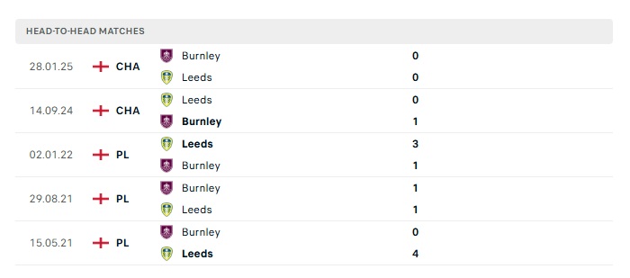 Lịch sử đối đầu Burnley vs Leeds Utd