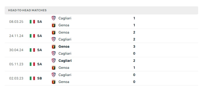 - Kèo tỷ số H2 Cagliari vs Genoa: 0-0