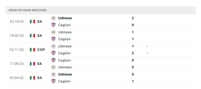- Kèo tỷ số H2 Cagliari vs Udinese: 2-1