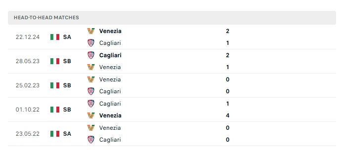 • Kèo tỷ số H2 Cagliari vs Venezia: 0-0