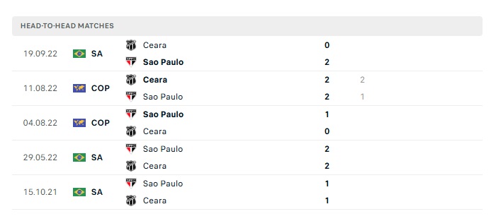 Lịch sử đối đầu Ceara vs Sao Paulo