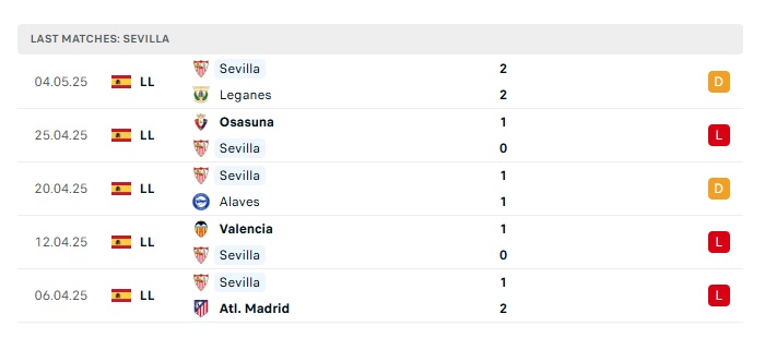 Phong độ gần đây Celta Vigo  vs Sevilla