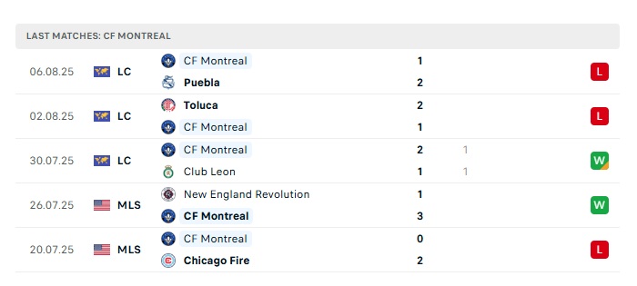 - Phong độ gần đây CF Montreal