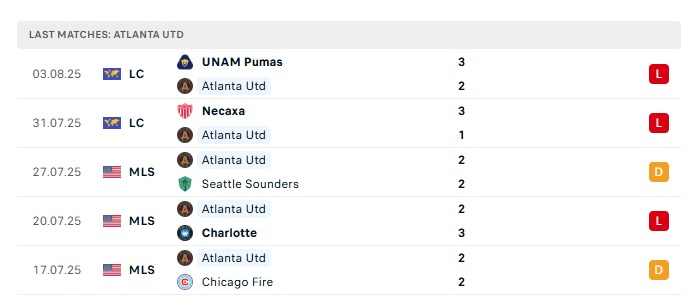 - Phong độ gần đây Atlanta United