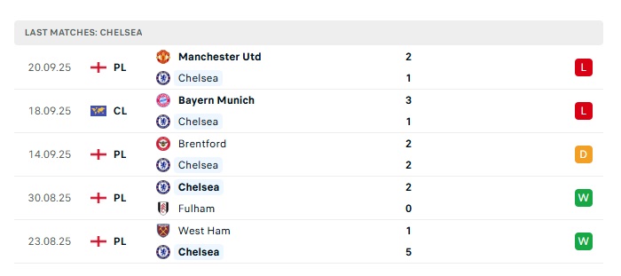 - Phong độ gần đây Chelsea