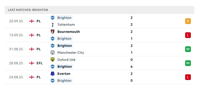 - Phong độ gần đây Brighton