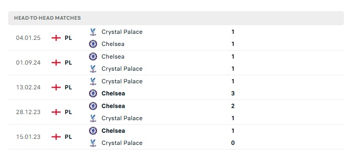 Lịch sử đối đầu Chelsea vs Crystal Palace