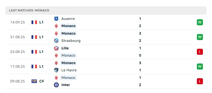 • Phong độ gần đây Monaco