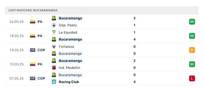 Phong độ gần đây Colo Colo  vs Bucaramanga