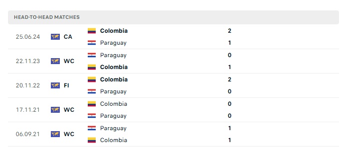 - Kèo tỷ số H2 Colombia vs Paraguay: 0-0