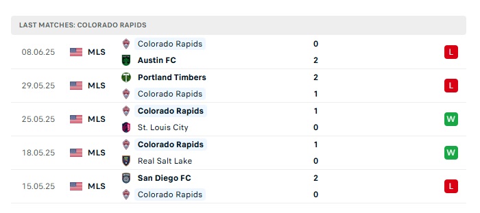 Phong độ gần đây Colorado Rapids  vs Orlando City