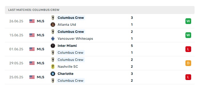 • Phong độ gần đây Columbus Crew