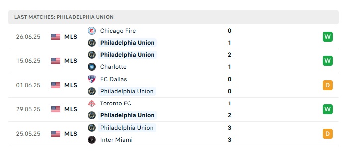 • Phong độ gần đây Philadelphia Union