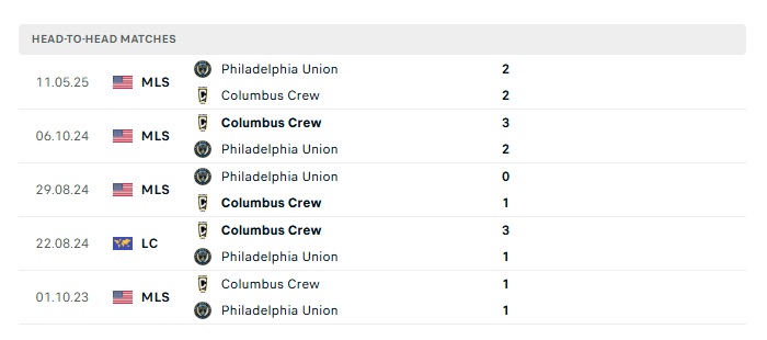 Lịch sử đối đầu Columbus Crew vs Philadelphia Union