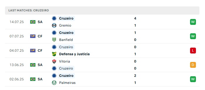 - Phong độ gần đây Cruzeiro