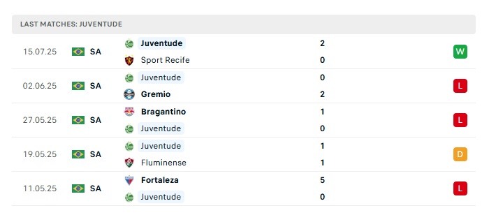 - Phong độ gần đây Juventude