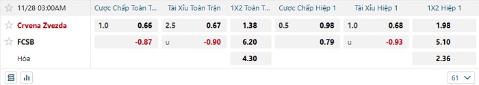 Soi kèo châu Á, kèo Crvena Zvezda vs Steaua Bucuresti