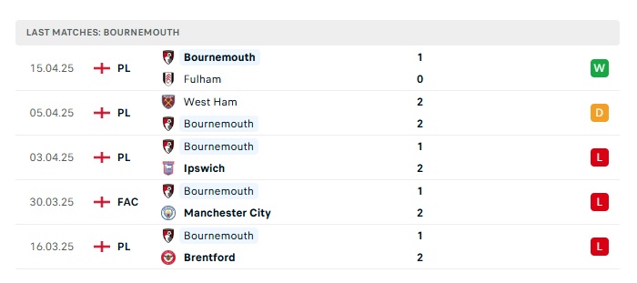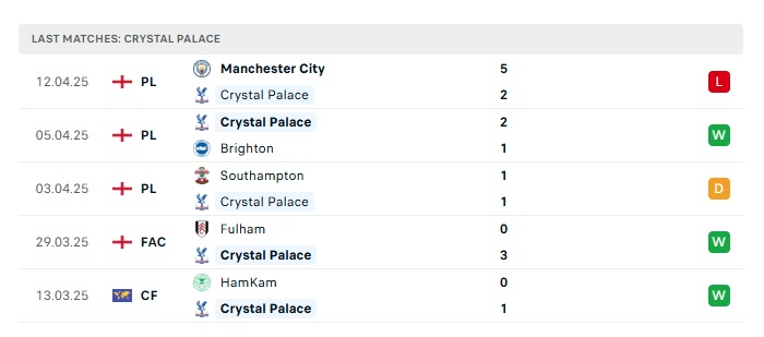 Phong độ gần đây Crystal Palace vs Bournemouth