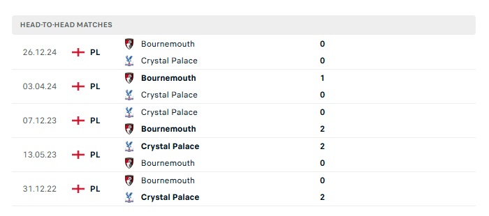 Lịch sử đối đầu Crystal Palace vs Bournemouth