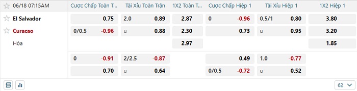 Soi kèo châu Á, kèo Curacao vs El Salvador