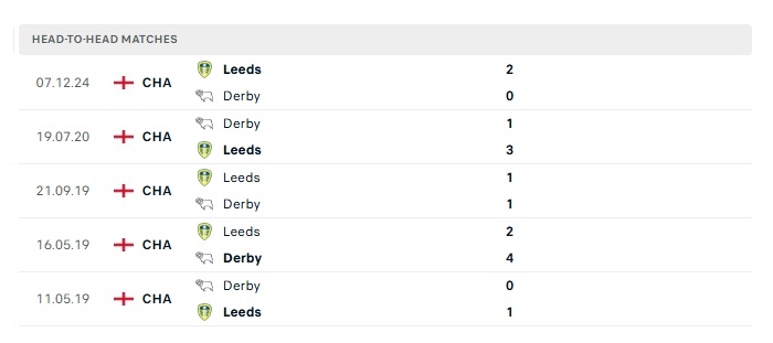 Lịch sử đối đầu Derby County vs Leeds Utd