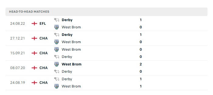 - Kèo tỷ số H2 Derby vs West Brom: 0-1