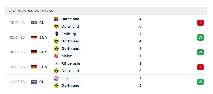 - Phong độ gần đây Dortmund