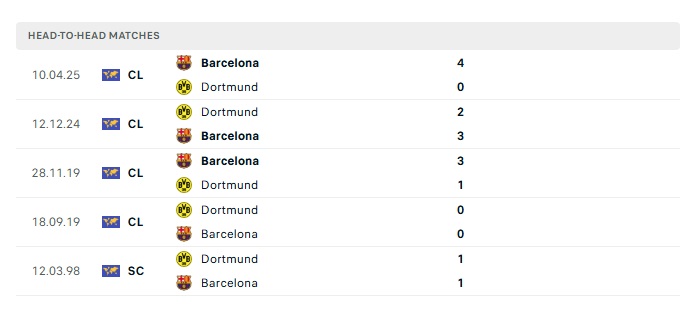 Lịch sử đối đầu Dortmund vs Barcelona
