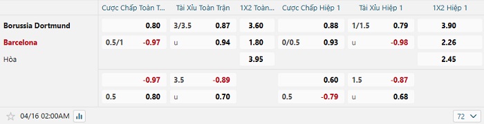 Soi kèo châu Á, kèo Dortmund vs Barcelona