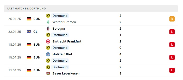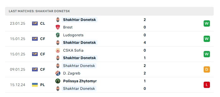 Phong độ gần đây Dortmund vs Shakhtar Donetsk