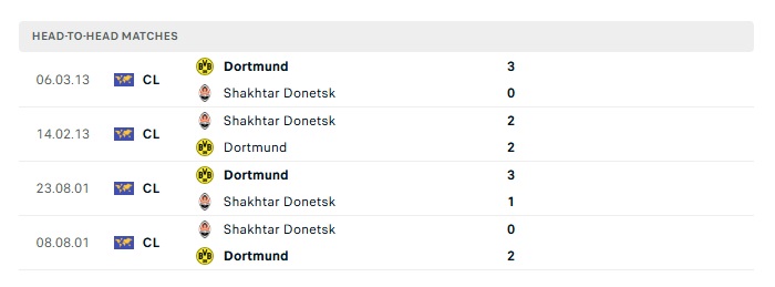 Lịch sử đối đầu Dortmund vs Shakhtar Donetsk