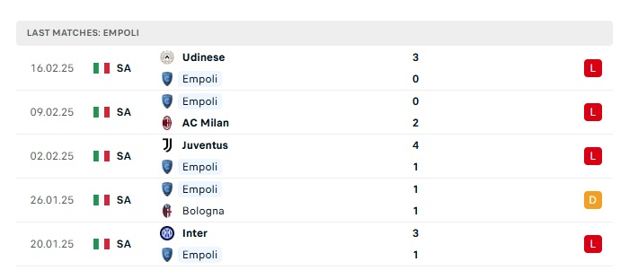 - Phong độ gần đây Empoli