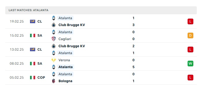 - Phong độ gần đây Atalanta
