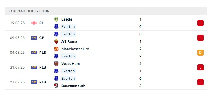 Không chỉ có phong độ kém cỏi ở mùa trước mà sang mùa mới, Everton vẫn không có những tín hiệu tích cực. Nên biết rằng Everton vừa qua đã thất bại trong ngày ra quân và chỉ đứng thứ 15 trên BXH. Trong khi đó thì Brighton vẫn đang có được vị trí thứ 9 sau khi chia điểm với đối thủ. Như vậy, Everton vẫn sẽ phải đối mặt với một áp lực khổng lồ trong ngày thi đấu hôm nay.