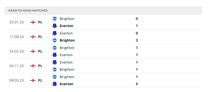 Theo ghi nhận thì phong độ thi đấu trong thời gian qua của Everton là cực kỳ tệ hại so với đối thủ. Tính trong 5 trận gần nhất của Everton, họ được ghi nhận chỉ hòa 1 và thua đến 4. Trong khi đó thì Brighton trong thời gian qua đang có cho mình 3 thắng và 2 hòa ở 5 lần ra sân gần nhất. Do đó, việc đội khách có cho mình 1 chiến thắng trong ngày thi đấu hôm nay là hoàn toàn dễ hiểu.
