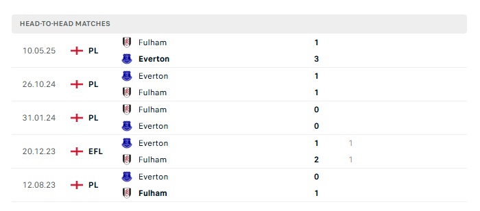 - Kèo tỷ số H2 Everton vs Fulham: 0-0
